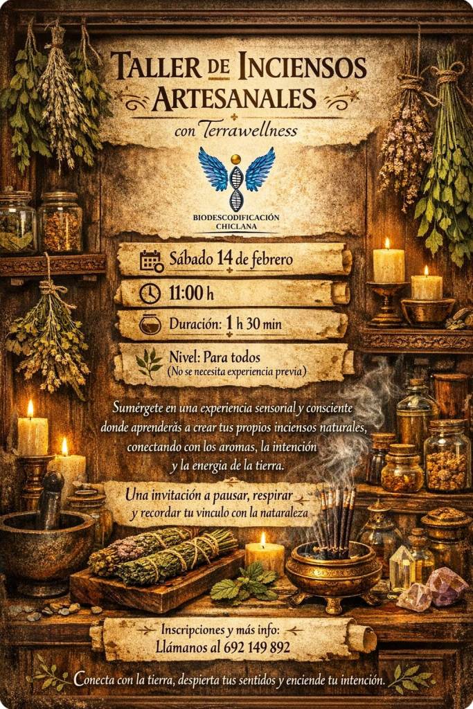 Un espacio de encuentro y reencuentro: con la Tierra, con tu propio ritmo interno y con la sabiduría ancestral que reside en cada planta y aroma. En este taller presencial guiado por Beatriz de @TerraWellness vivirás una experiencia sensorial y espiritual en la que conectarás con la memoria viva de la naturaleza y crearás tus propios inciensos desde la intención profunda y la presencia consciente.